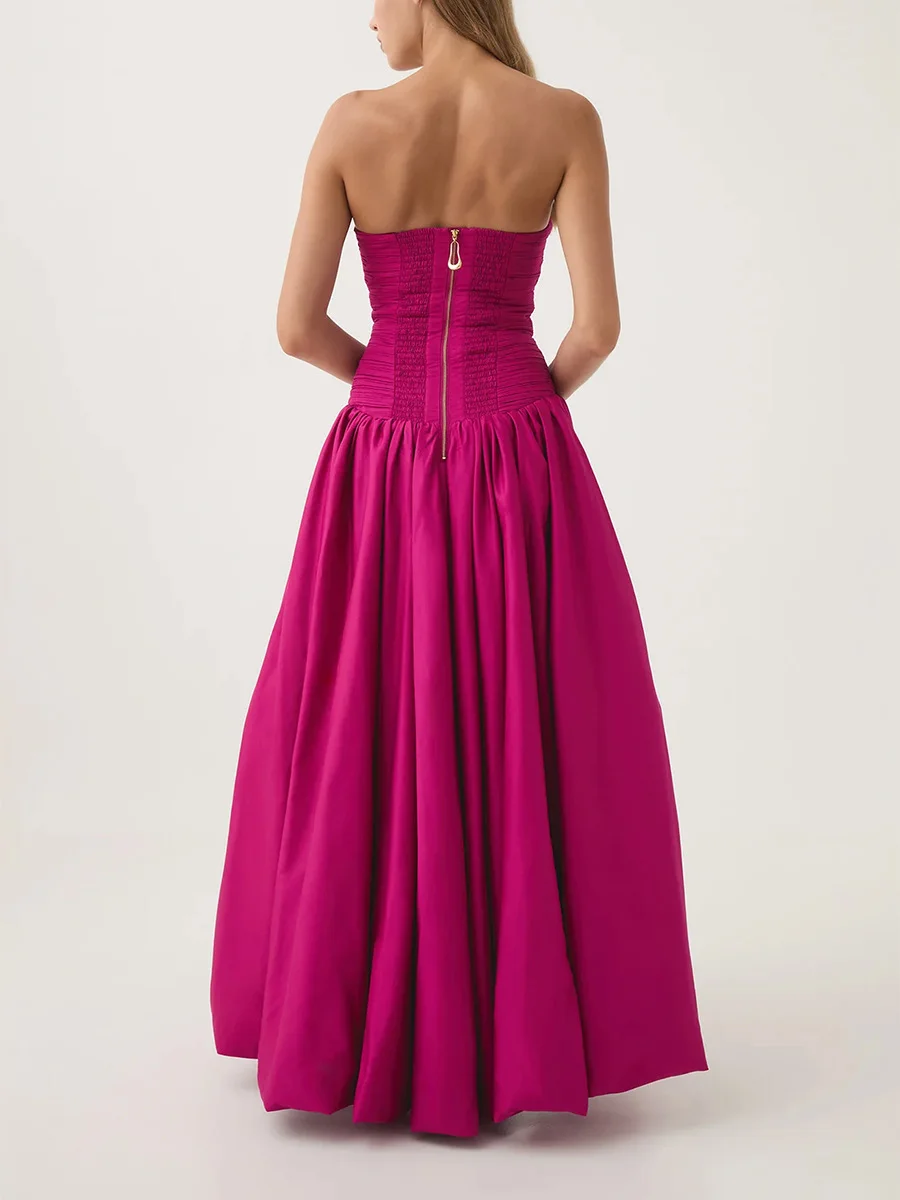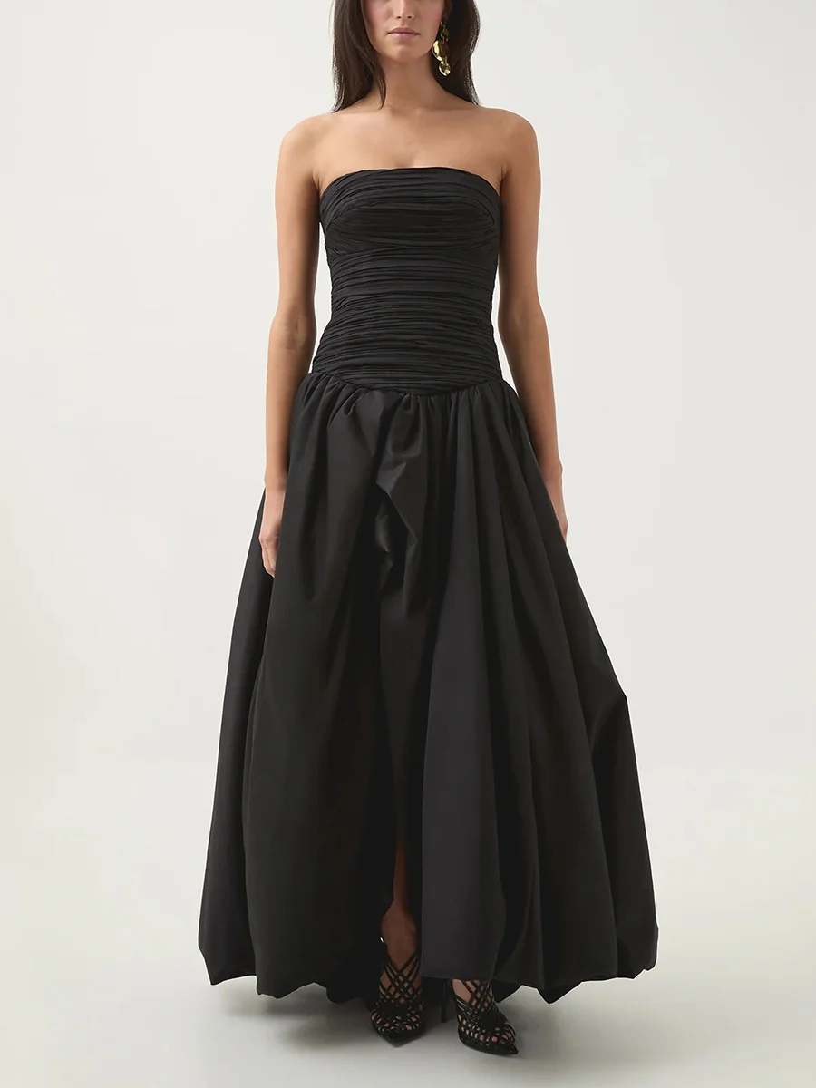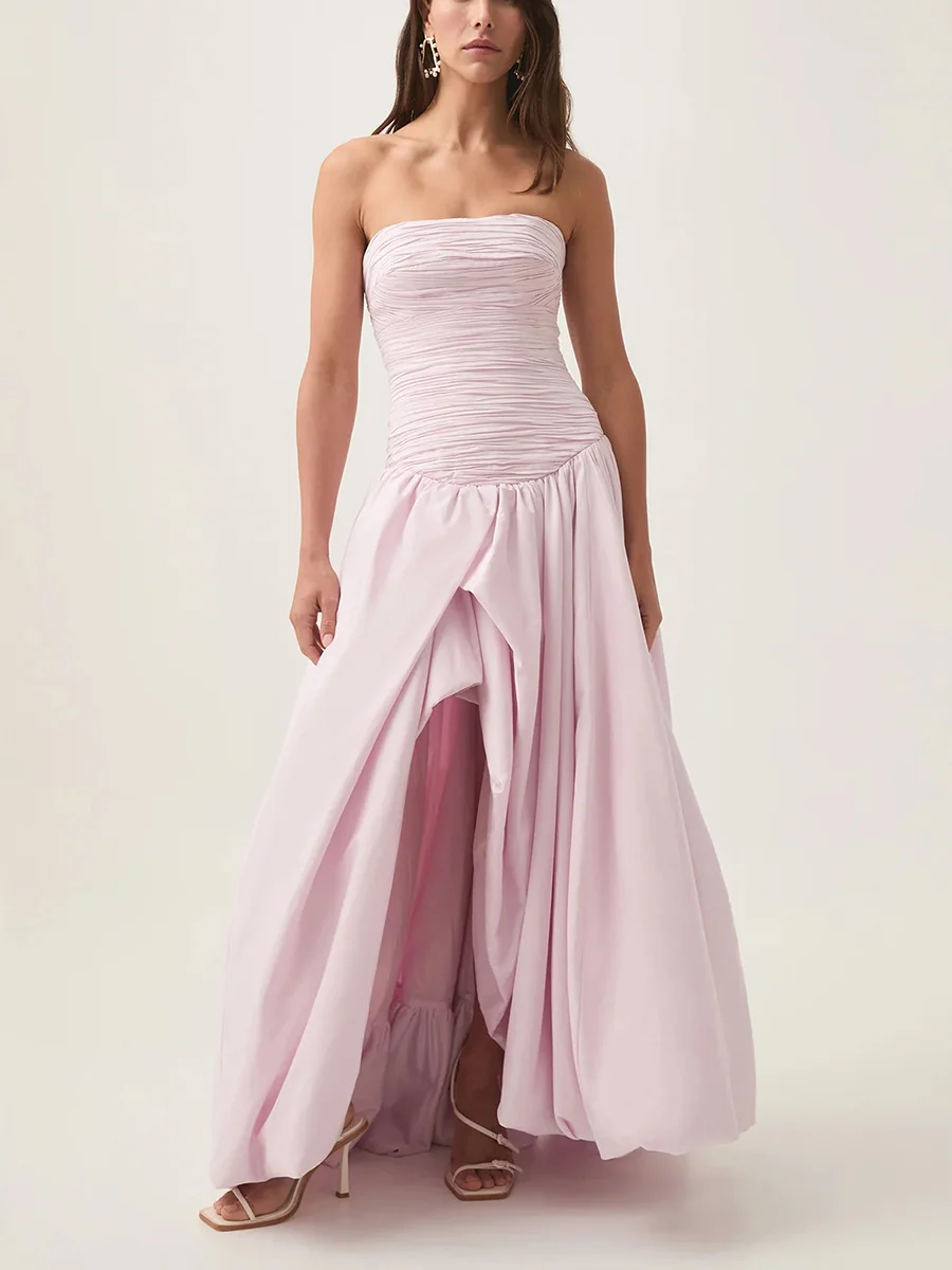 2026 Elegant Waist Slimming Maxi Dress Sexy Strapless Thigh Slit Solid Color Long Dresses Women Casual Long Dress